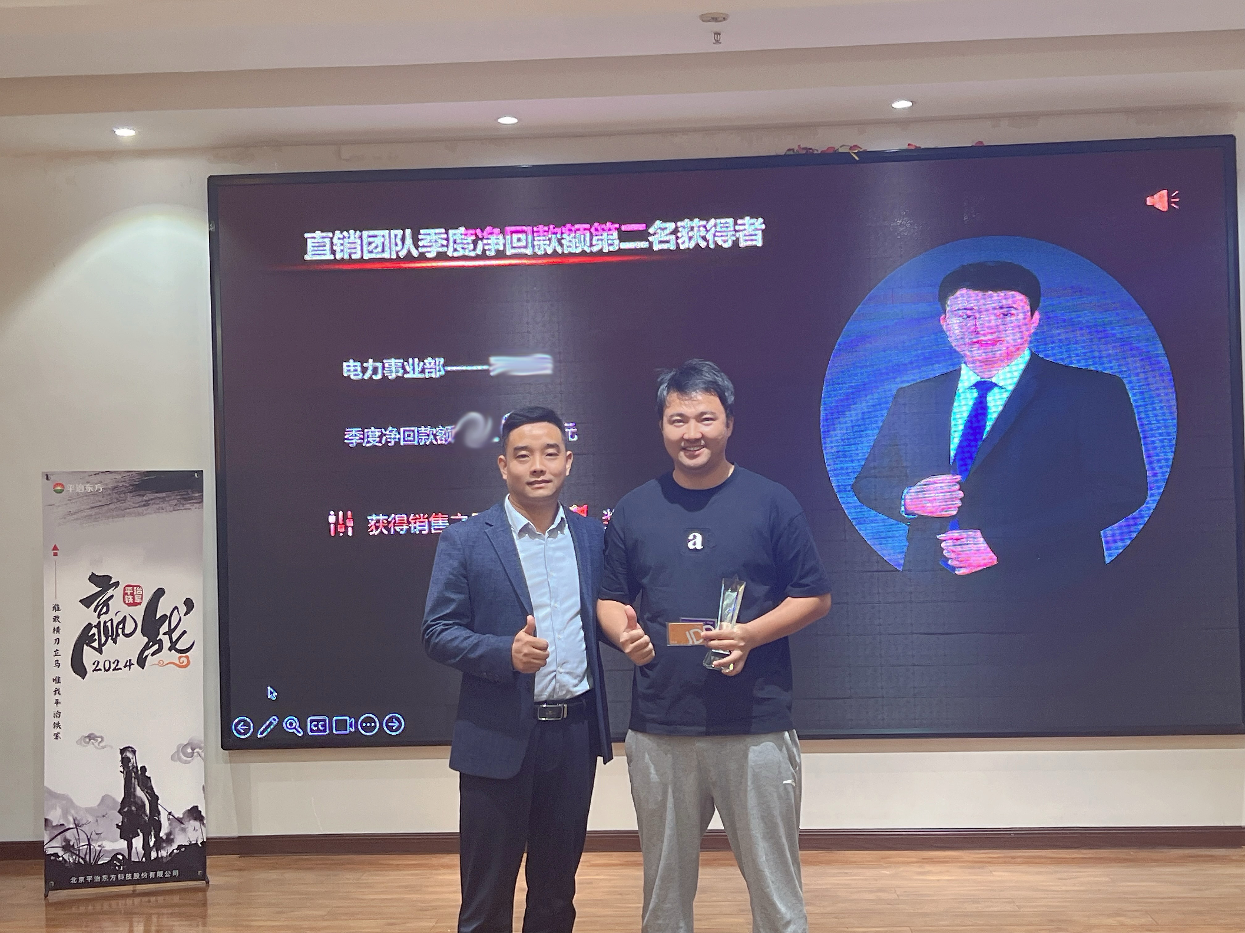 In 2024, the company launched the "Quarterly Sales Ranking" PK activity for all sales and channel teams. After fierce competition, three sales elites stood out and were awarded the title of "Quarterly Sales Star". Mr. Fan and Mr. Zhao personally presented them with prizes and bonuses to recognize their outstanding contributions.