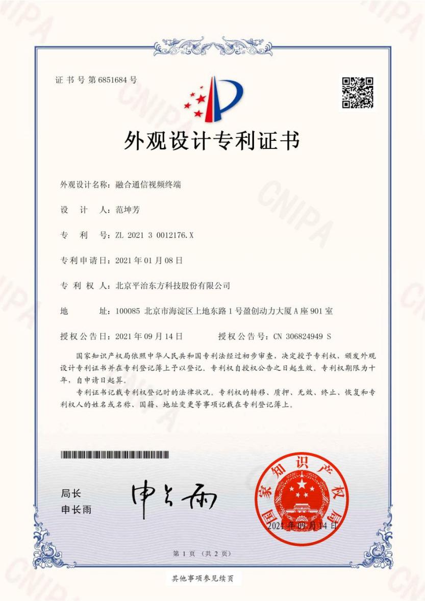 Recently, Porient was awarded a patent certificate for the design of communication video terminals by the National Intellectual Property Administration. By now, Porient has accumulated over 90 patents and software Copyrights.