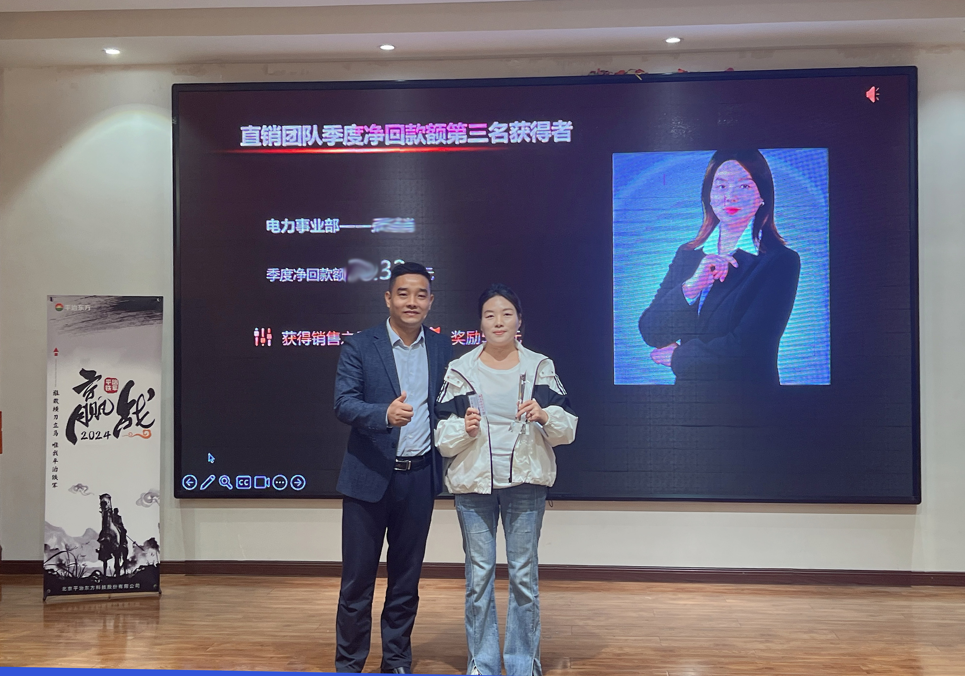 In 2024, the company launched the "Quarterly Sales Ranking" PK activity for all sales and channel teams. After fierce competition, three sales elites stood out and were awarded the title of "Quarterly Sales Star". Mr. Fan and Mr. Zhao personally presented them with prizes and bonuses to recognize their outstanding contributions.